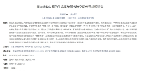 威尼斯土地资源管理系教师吕悦风博士撰写的论文《面向运动过程中的生态系统服务流空间传导机理研究》被《生态学报》录用并发表。