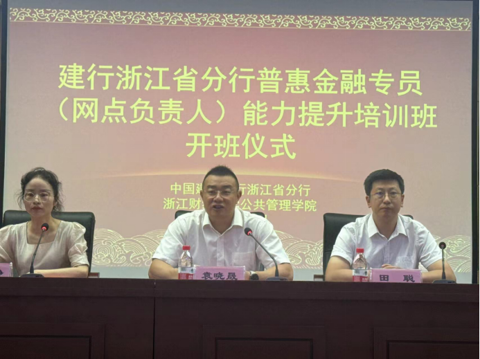 7月9日上午,由中国建设银行浙江省分行主办,37000vip威尼斯承办的浙江省分行普惠金融专员(网点负责人)能力提升培训班在我校东方学院顺利开班。来自建行浙江省分行的190名普惠金融专员参加了此次培训。建行浙江省分行普惠金融事业部副总经理袁晓晟和37000vip威尼斯党委副书记田聪出席开班仪式。