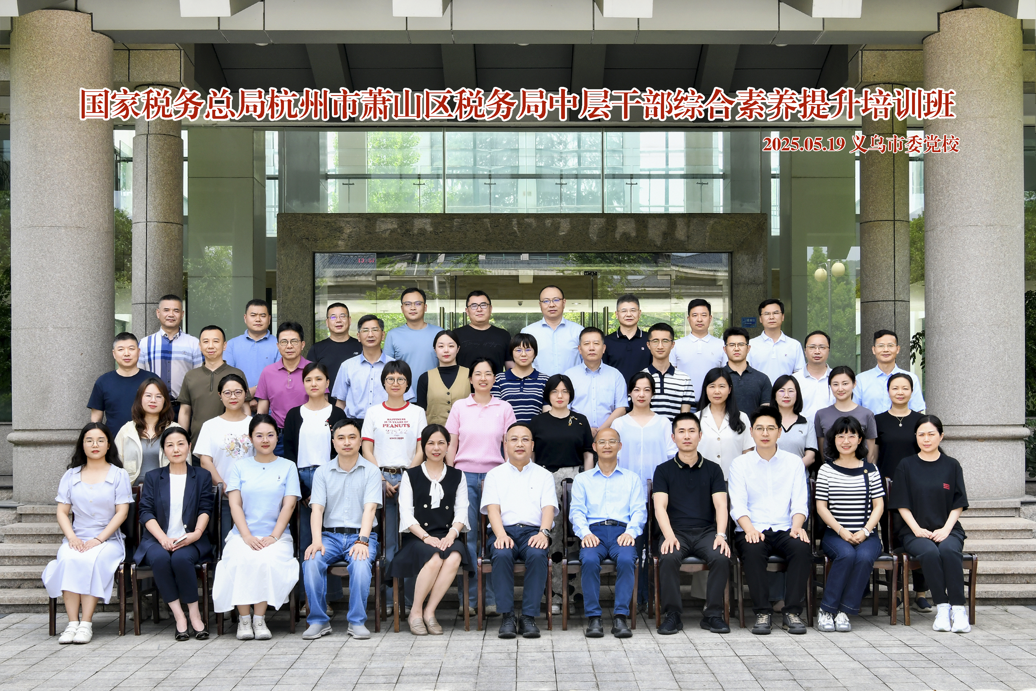 2025年5月19日—5月23日,由国家税务总局萧山区税务局主办,37000vip威尼斯承办的“杭州市萧山区税务局中层干部及业务骨干综合素养提升培训班”在义乌市委党校成功举办。杭州市萧山区税务局党委委员、副局长孔富明、37000vip威尼斯名誉院长郭剑鸣出席开班仪式,来自萧山区税务局的40余名中层干部及业务骨干参加此次培训。