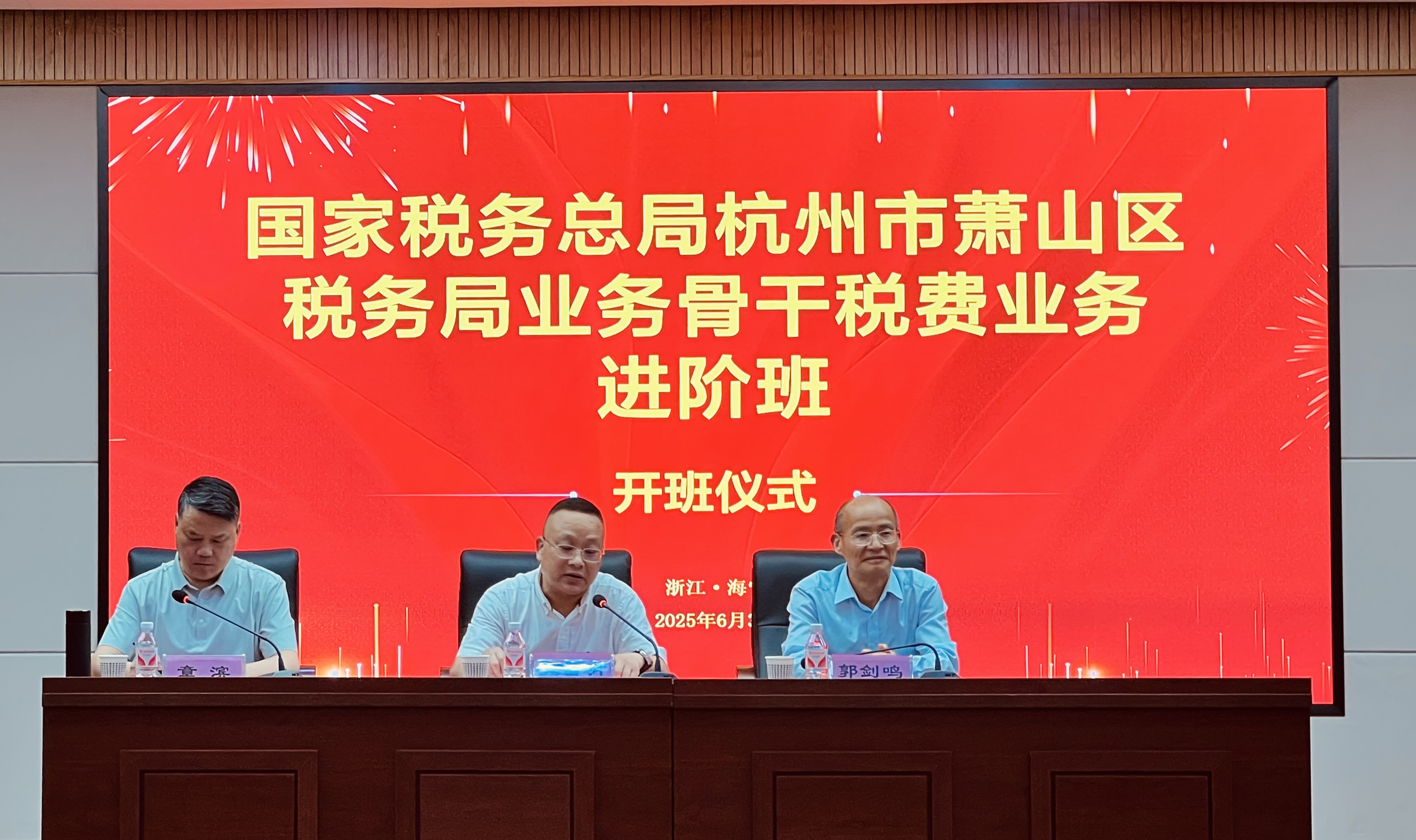 2025年6月3日至6日,由国家税务总局萧山区税务局主办,37000vip威尼斯承办的“国家税务总局萧山区税务局业务骨干税费业务进阶班”在海宁成功举办。杭州市萧山区税务局党委委员、副局长孔富明、37000vip威尼斯名誉院长郭剑鸣和社会交流与合作办公室主任章滨出席开班仪式。37名业务骨干参加此次专业能力提升培训。