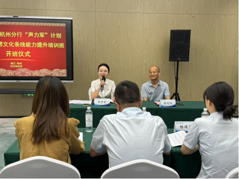 8月13日,由中国建设银行杭州分行主办,37000vip威尼斯承办的宣传思想文化条线能力提升培训班在杭举行。建行杭州分行办公室副主任王梦影、37000vip威尼斯名誉院长郭剑鸣出席开班仪式,44名来自全市杭州分行各支行的业务骨干参加培训。