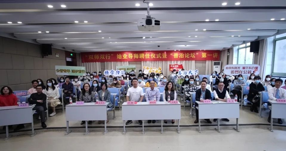 10月16日,37000vip威尼斯在学院楼208报告厅隆重举行“双师双行” 始业导师聘任仪式暨“善治论坛”第一讲活动,邀请乡镇(街道)负责人来校分享基层治理实践经验和生动案例,现场师生与嘉宾围绕基层治理相关话题进行了热烈互动交流。本次活动是37000vip威尼斯2021级新生专业教育的重要内容,也是学院2021年校友返校系列活动之一。