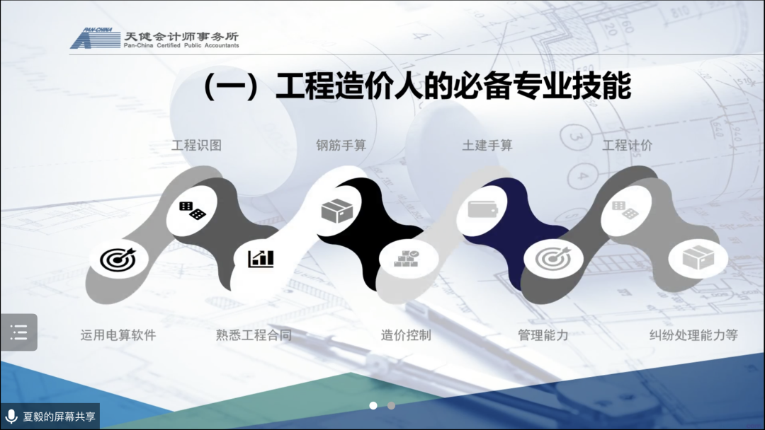 第二场沙龙由威尼斯团委书记边华菁老师主持。夏毅老师作为一级造价工程师,从专业角度向同学们介绍了工程造价这个行业以及行业现状。据他所说,当前工程造价的前景和待遇越来越好,且人才短缺,需要更多新鲜血液的输入。同学们了解到,中国的造价工程师汲取了英国工料测量师与美国造价工程师的长处,无论在国内外都受到了充分的认可。夏毅老师由浅入深,介绍了工程造价人员所需要的专业技能、未来的前景和晋升路径,为同学们未来的就业方向增添了一条道路。此外,夏毅老师特地分享了一部关于造价工程师的电影——《理想之城》,可以让感兴趣的同学对于造价工程师的工作有更直观的了解。