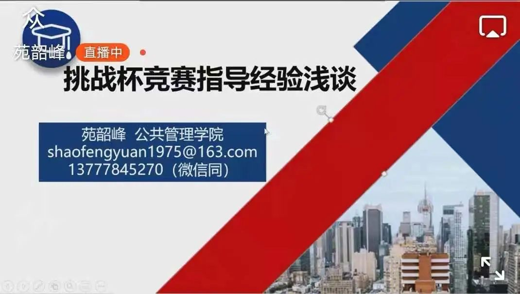 感谢苑韶峰教授在百忙之中抽出时间进行赛事指导,解答同学们的疑惑,引导同学们如何去准备、参与竞赛,传授了许多关于竞赛方面的知识,同时预祝各位参赛同学能够在挑战杯比赛中获得满意的结果。