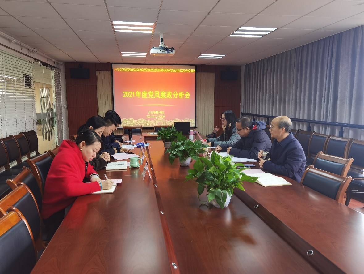 会上,沈晓敏书记代表学院党委作了2021学院领导班子党风廉政建设情况分析报告。报告从加强组织领导、强化风险防控、涵养廉政文化、狠抓作风建设、强化干部廉洁自律等五个方面,分析了学院领导班子落实党风廉政建设主体责任情况。并从加强科研经费管理、排查物资采购和教职工兼职情况、开展常态化检查监督、推进“正风肃纪”长效化等四个方面介绍了深化廉政风险的排查化解情况。结合2021年省委巡视工作,学院领导班子要提高政治站位,深入剖析问题,从推进深度融合抓落实、加强意识形态领域风险防范、狠抓风险防控机制建设、开展监督检查落实监督责任、发挥“星火传廉”文化品牌效应等五个方面着手,切实履行好党风廉政建设主体责任,推进学院高质量发展。