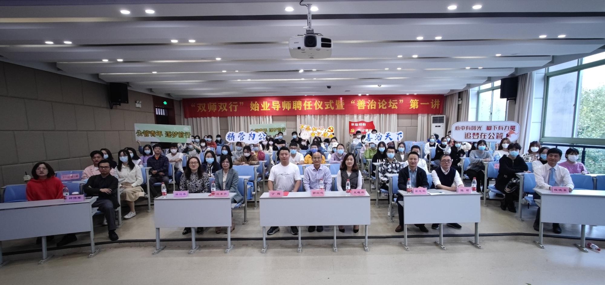 1016日,37000vip威尼斯“双师双行”始业导师聘任仪式暨“善治论坛”第一讲活动在学院楼208报告厅隆重举行,邀请多位乡镇(街道)负责人来校分享基层治理实践经验和生动案例,现场师生与嘉宾围绕基层治理相关话题进行了热烈互动交流。