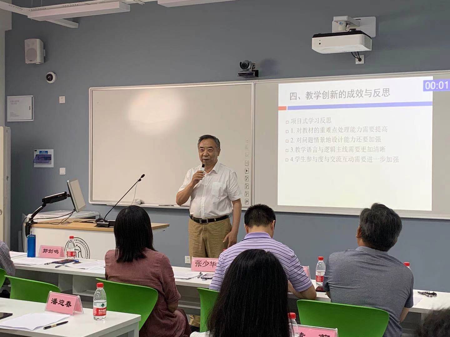 评委代表崔大树高度评价学院重视课堂教学、以生为本、积极创新的教学态度,并就教学理念与目标、教学内容、教学过程、教学方法等方面问题提出了意见建议。