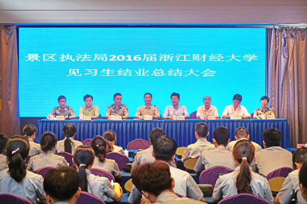 总结大会上,见习生代表汇报了同学们近5个月来见习情况和自己的心得体会,认为这次见习是一次难得的宝贵经历,收获很大,不仅增长了知识、锻炼了能力,更开阔了视野、磨练了意志,这些都为以后的学习生活打下了良好基础。景区执法局局长冯刚在点评发言中对同学们的表现给予高度评价,对同学们的收获和成长表示欣慰和满意。他认为这次见习是校政合作的典范,并希望通过深化合作共建城市管理、综合执法后备梯队生力军。