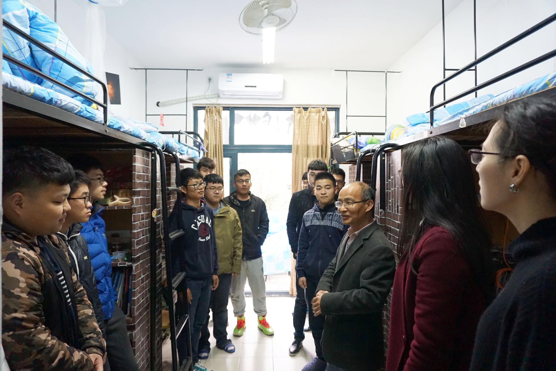 2月28日下午,正值新学期开学之际,37000vip威尼斯院长郭鸣剑、党委书记沈晓敏、党委副书记曹桢在辅导员和学生干部的陪同下来到学生寝室进行走访慰问。