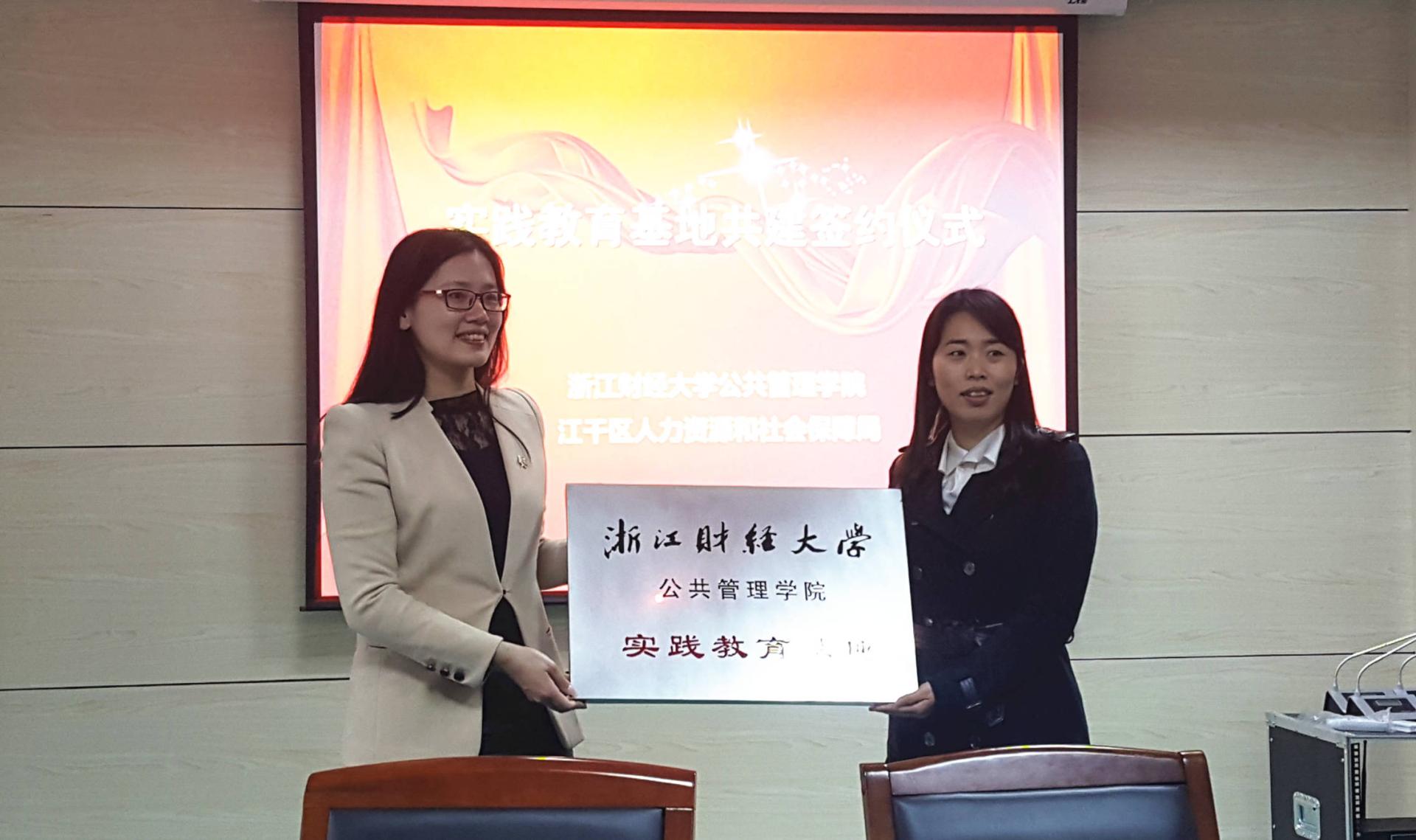 3月30日上午,威尼斯劳动与社会保障专业与江干区人力与社会保障局实践教育基地合作签约仪式在社保局四楼会议室举行。杭州市就业管理服务局专业技能交流处处长叶金香、副处长肖春华,江干区人力社保局副局长姚燕丽,学院党委书记沈晓敏、社会保障学科带头人戴卫东和系主任黄志岭老师等相关人员出席参加仪式。仪式由江干区就业管理服务处主任郑常华主持。在温馨隆重的氛围中,姚燕丽副局长与沈晓敏书记代表双方正式签署共建实践教育基地协议。