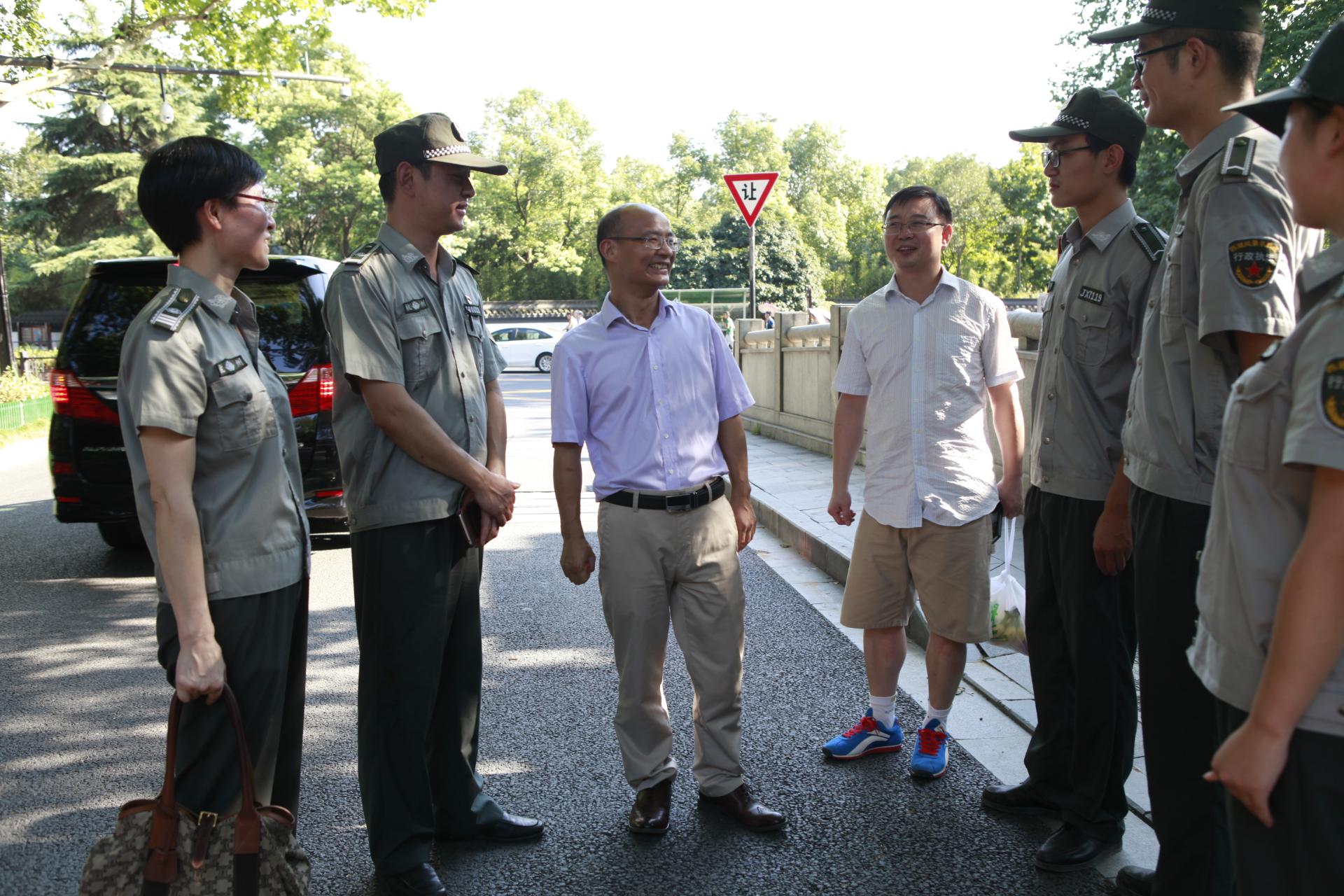 郭院长先后到景区城管执法局机关、凤凰山中队、灵隐中队、岳庙中队等多个实习点看望在岗的实习生并送去防暑降温物品。实习生们以精神饱满的状态认真汇报了实习工作和收获。特别是凤凰山中队服务岗亭两位高颜值实习生,以热情周到的服务赢得了国内外游客的一致好评,被景区誉为“贴心城管”示范岗。其中蒋佳宝同学作为优秀代表还被选拔参加景区迎峰会“百日会战”大比武。在各部门内勤工作的实习生们积极推送微信,传播G20知识和景区城管执法信息,受到景区管委会乃至杭州市领导的普遍赞誉。郭院长对同学们的表现给予高度肯定,鼓励他们继续坚守岗位,尽心尽力为游客提供服务,并希望同学们谦虚谨慎,好学多问,尊重指导老师。