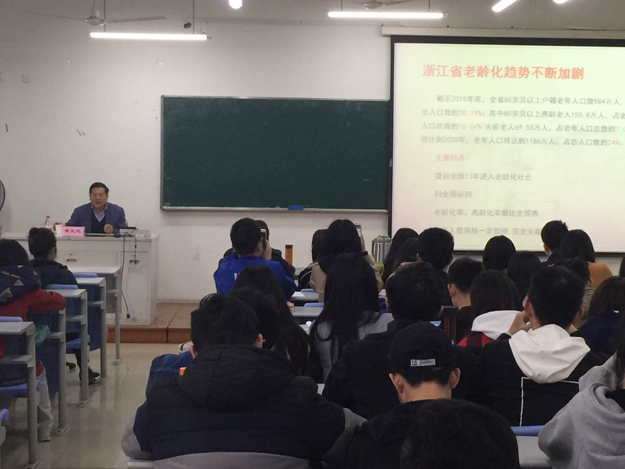 4月11日下午,浙江省社会福利协会会长、浙江省民政厅社会福利与老年服务处处长黄元龙应邀为威尼斯劳动与社会保障系全体本科生、研究生作了题为“浙江省养老服务现状、问题与政策思考”的专题报告。讲座由戴卫东教授主持。