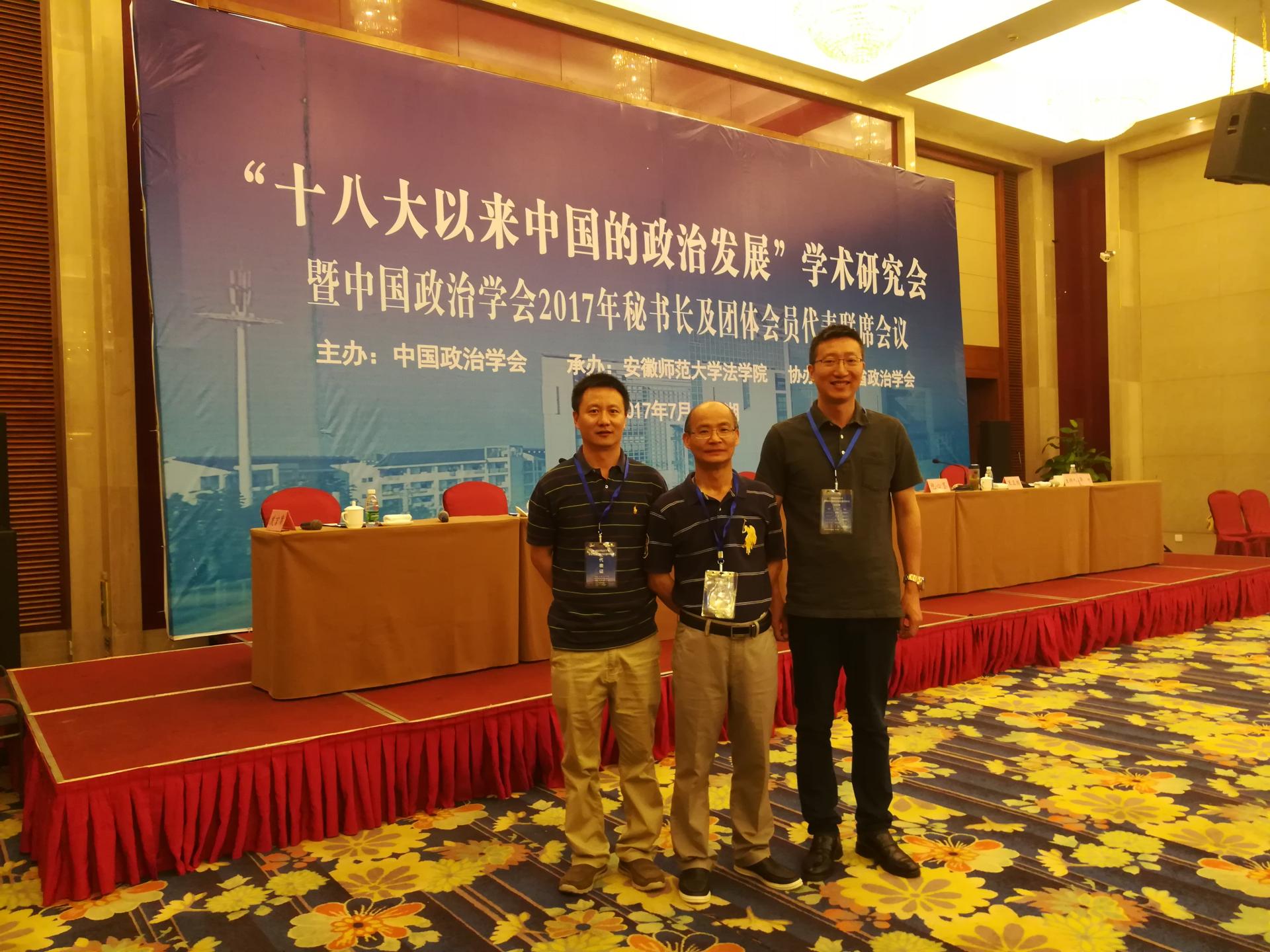 7月15日,由中国政治学会主办、安徽省政治学会协办的“中共十八大以来中国的政治发展与政治学”学术研讨会暨中国政治学会2017年各省市秘书长及团体会员代表联席会议在安徽师范大学顺利召开,来自全国各省市政治学会的领导以及50余所高校专家代表共120余人参加了会议,威尼斯院长郭剑鸣教授、副院长裴志军教授、操世元副教授三位教师应邀参加。