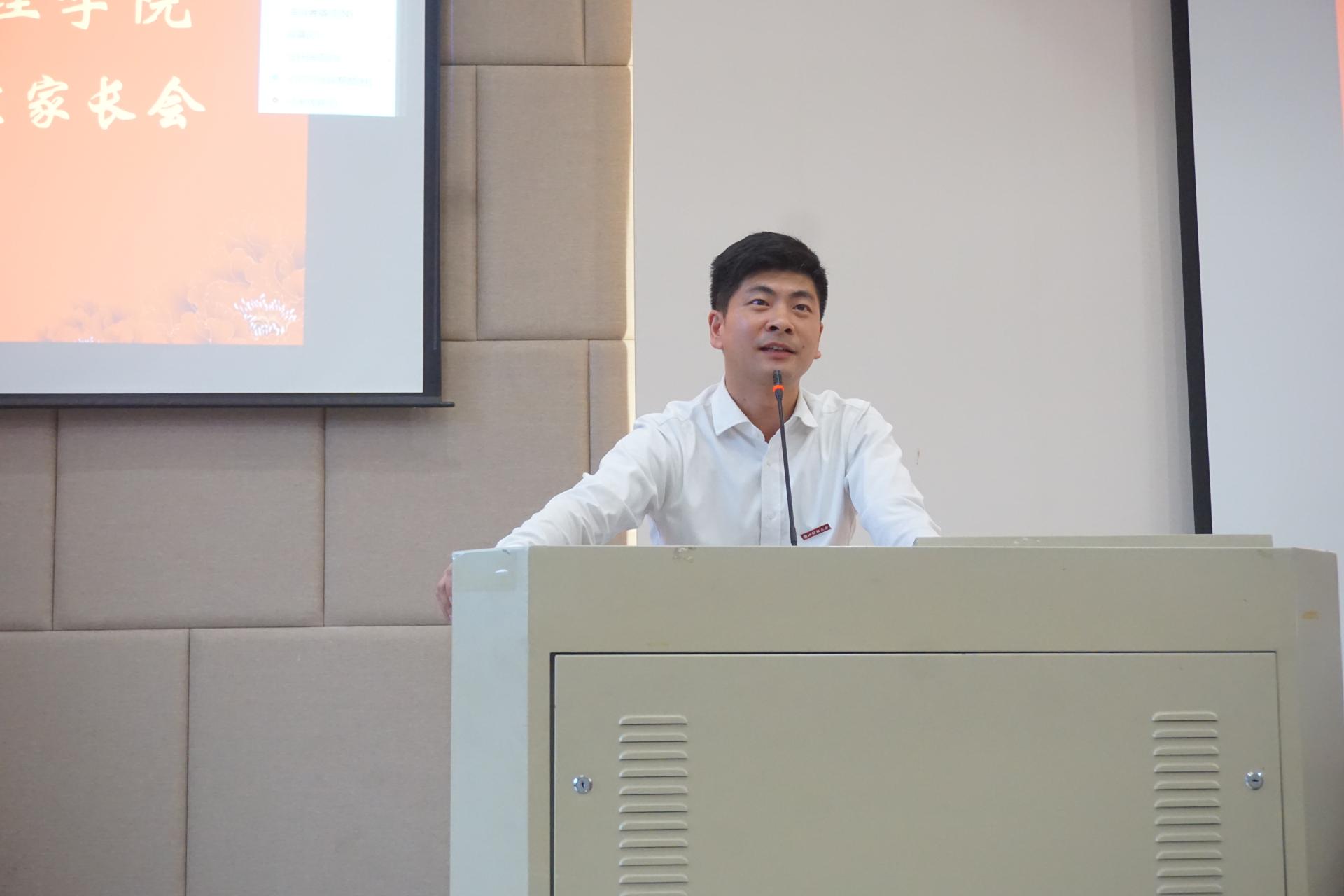裴志军副院长向家长们介绍了学院各学科专业情况,展示了学院教育教学实力,并就引导学生向更高层次发展目标等问题提供了建议和思考。程晓东副书记就新生入学需要注意的事项与家长进行了交流,并介绍了学生工作相关情况和沟通联系相关事宜。