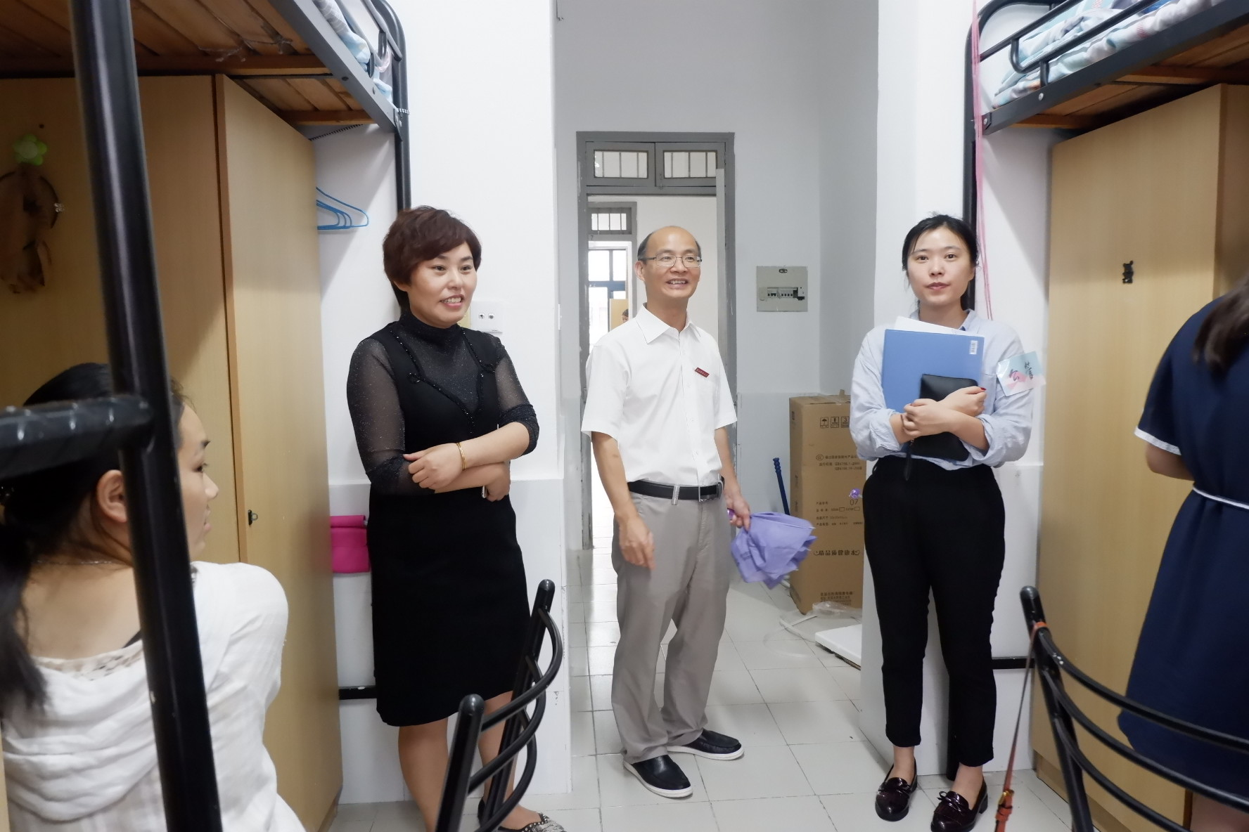 学院领导亲临现场慰问工作人员,并在辅导员的陪同下走访了2017级新生寝室,深入了解新生情况,叮嘱学生有关注意事项。学院的高度重视和老师们的亲切关怀,拉近了师生之间的距离,让广大新生倍感亲切和温暖。