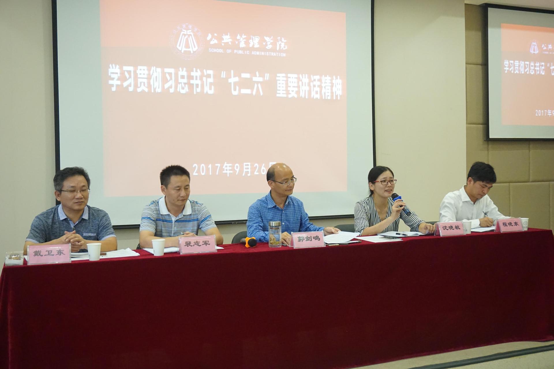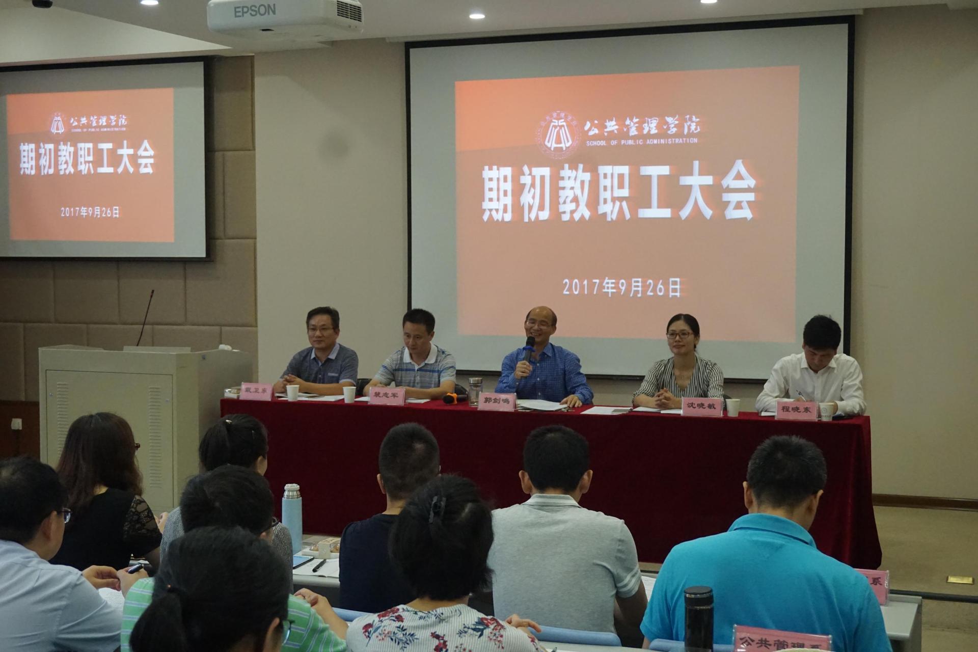 郭剑鸣院长通报了暑期学科和科研新进展,部署了新学期八项重点工作:一是迎接十九大召开,贯彻落实十九大会议精神;二是根据大类招生的要求,以人才培养为导向修订培养方案;三是举办地方政府廉政评价理论与方法研讨会;四是启动硕士学位点合格评估工作;五是完成新一轮专业技术岗位聘任和绩效分配改革工作;六是各系各办对标检查,查短板找原因加快内涵发展;七是加快研究院、研究中心、学院团队的建设与运行;八是打造学院文化品牌,深抓省级学科竞赛。