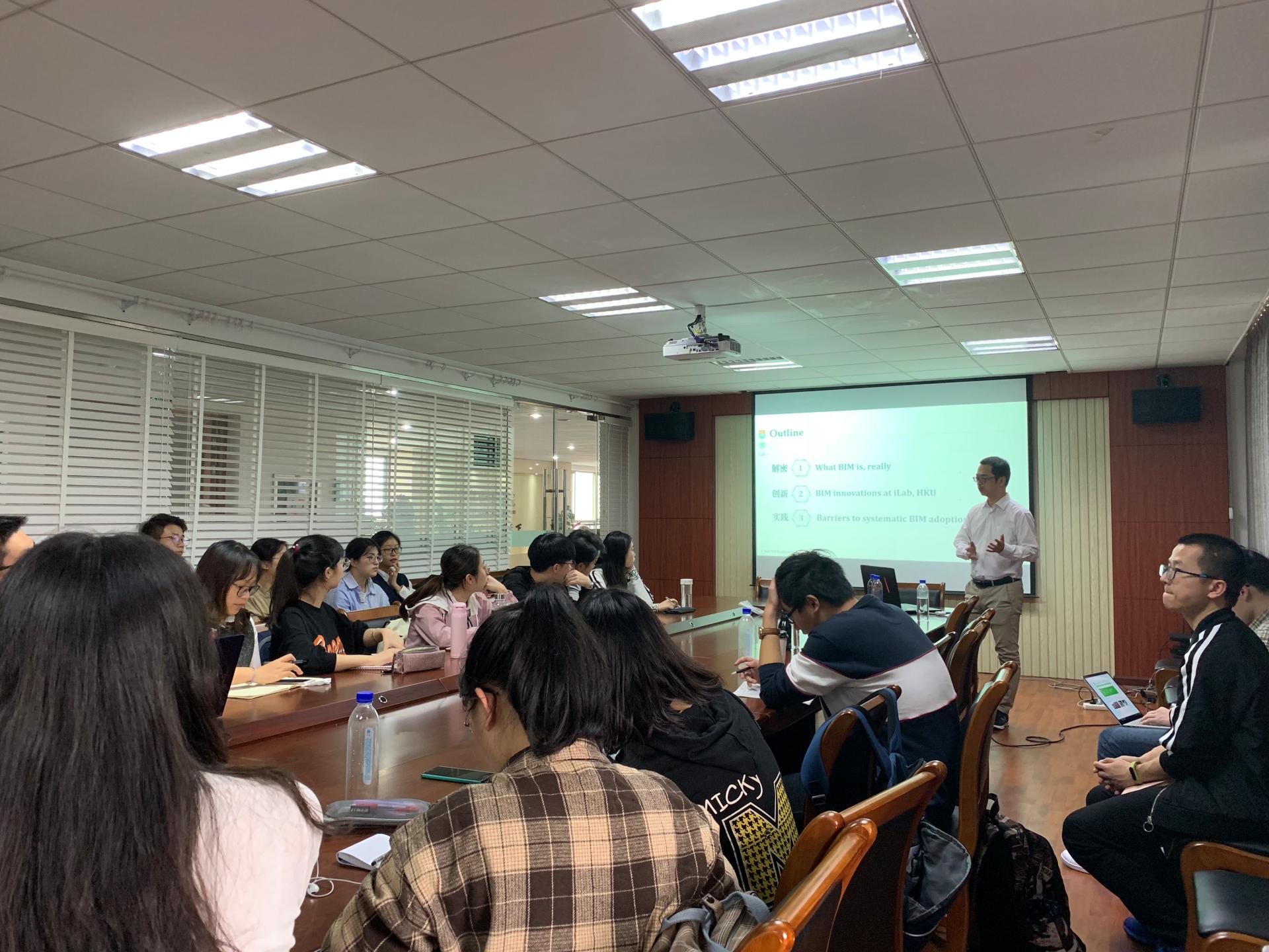 讲座后在场师生与薛博士等人就雷达探测技术在房屋结构安全检测的应用、CIM应用层面的信息共享困难、创新研究切入点等方面进行深入讨论。此次学术报告立足前沿,多视角研究,为BIM工作坊的创新与研究工作开展提供了有益参考。