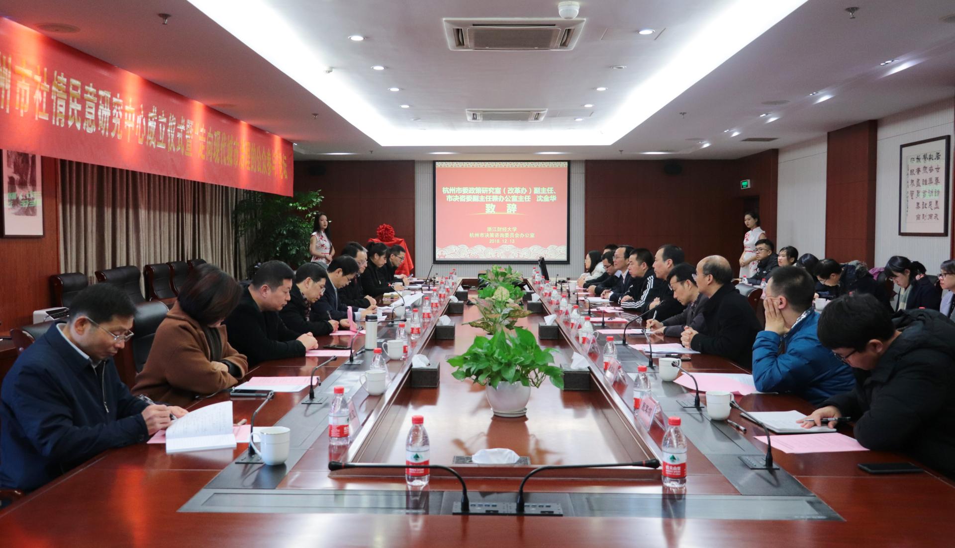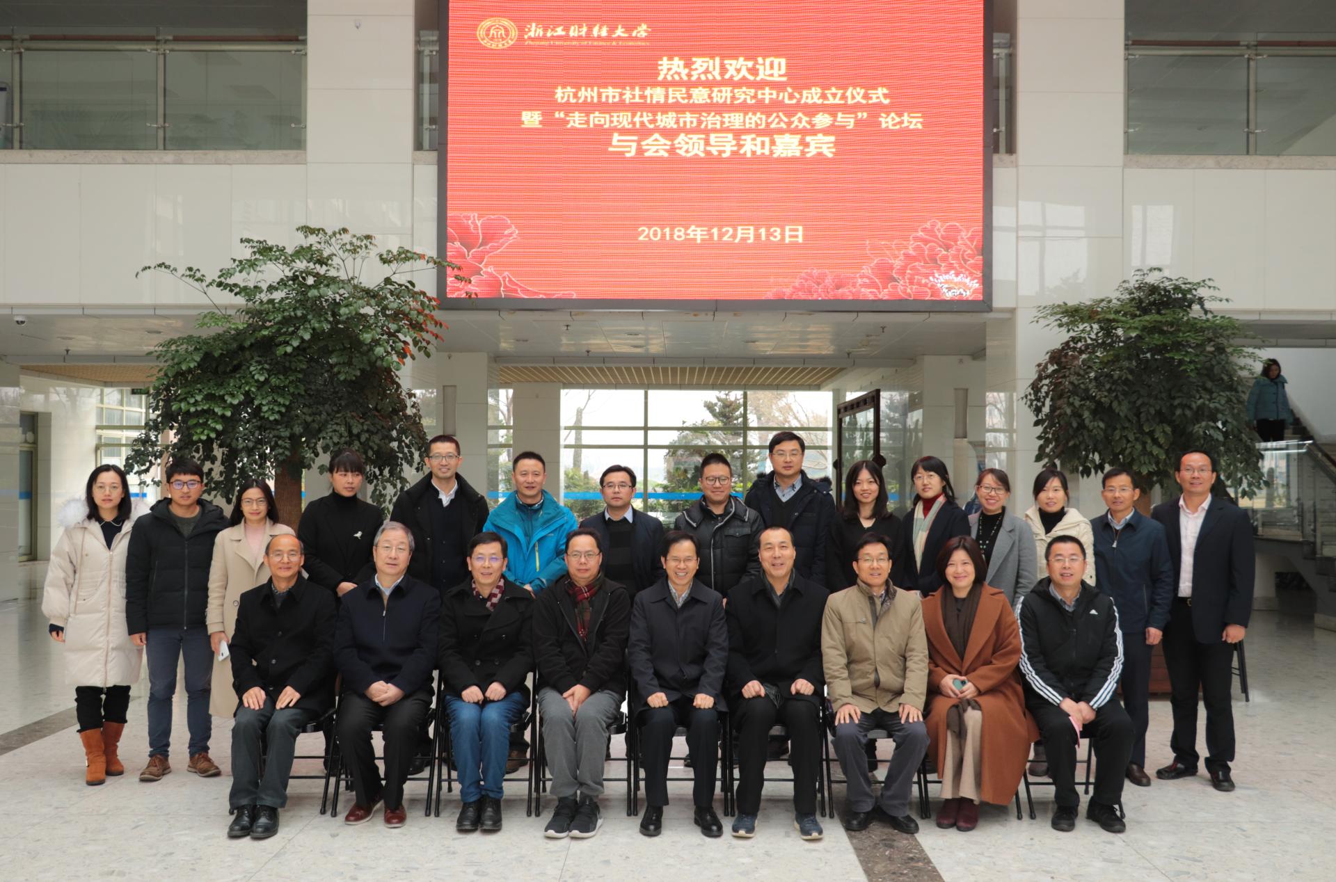 12月13日,杭州市社情民意研究中心成立仪式暨“走向现代城市治理的公众参与”论坛在我校举行。来自浙江省社科联、杭州市委政策研究室(改革办)、市决咨委、浙江大学、37000vip威尼斯等多家单位的领导嘉宾、专家学者、媒体代表和研究员们三十余人出席了本次仪式。