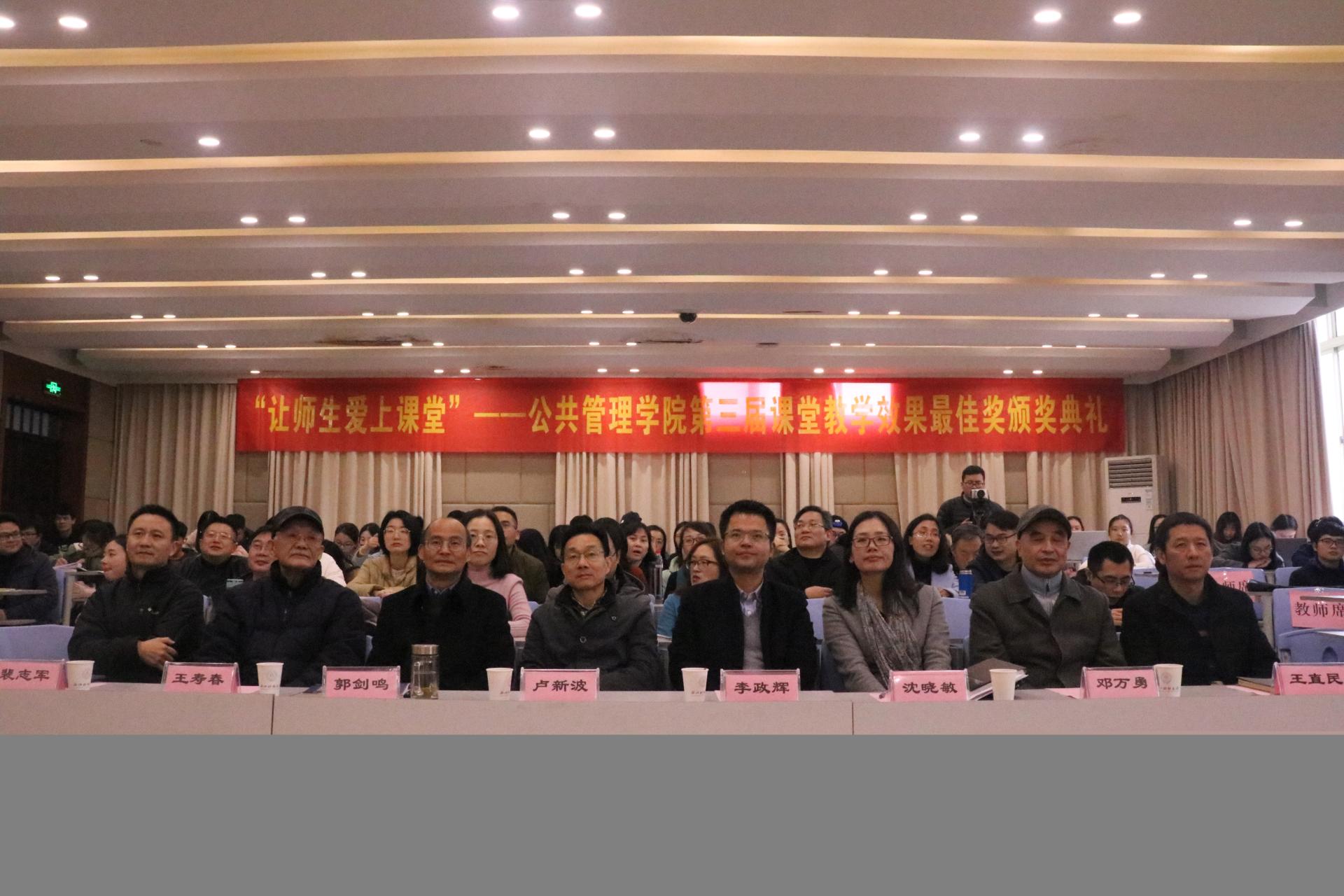 12月25日下午,“让师生爱上课堂”——37000vip威尼斯第三届课堂教学效果最佳奖颁奖典礼在一号学院楼208隆重举行。校党委副书记卢新波、教务处处长李政辉、教学督导组主任王寿春、教学督导邓万勇等领导和嘉宾应邀出席。学院领导班子、各系主任、专业负责人、全体教师和学生代表参加了颁奖典礼。