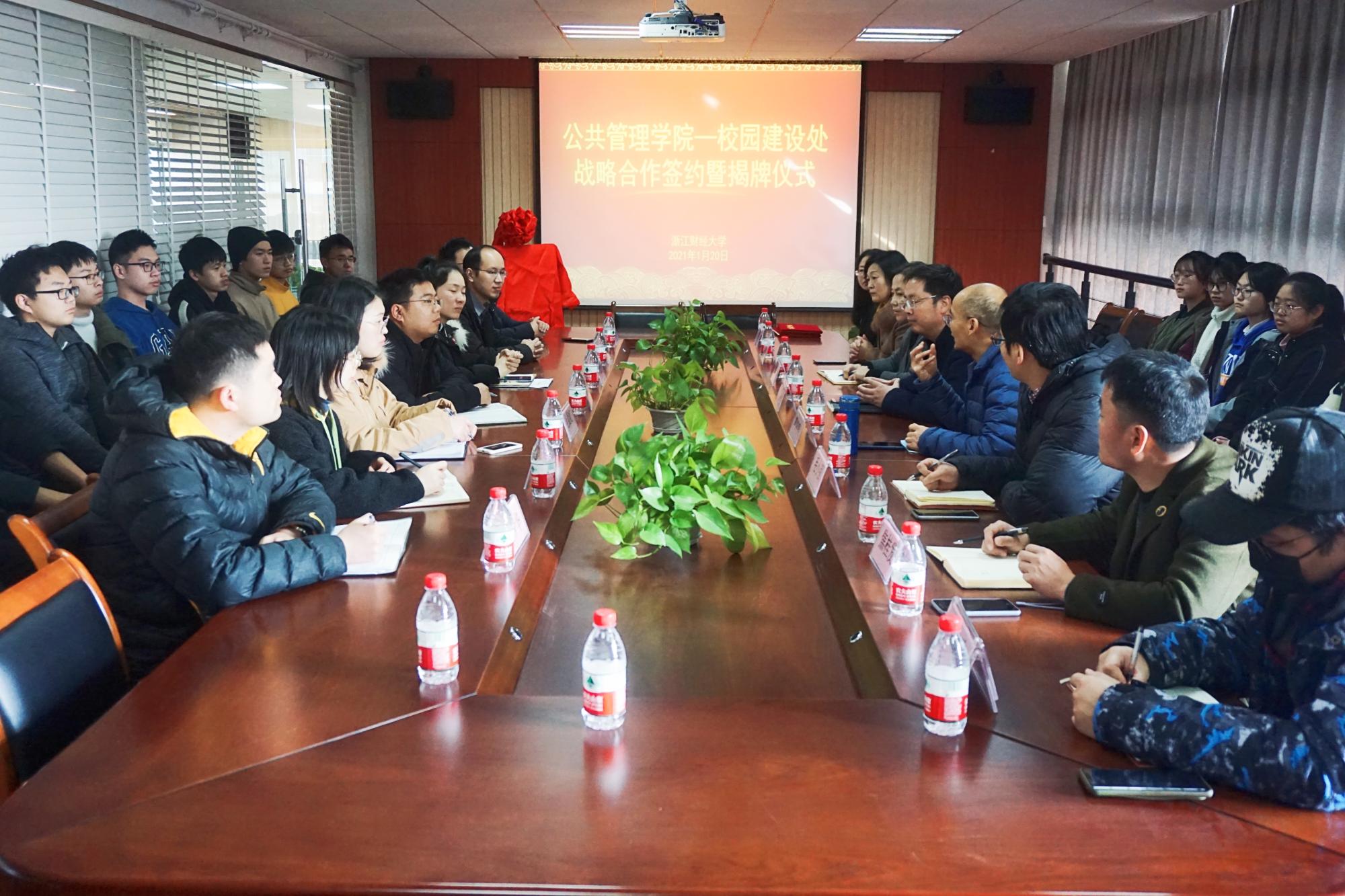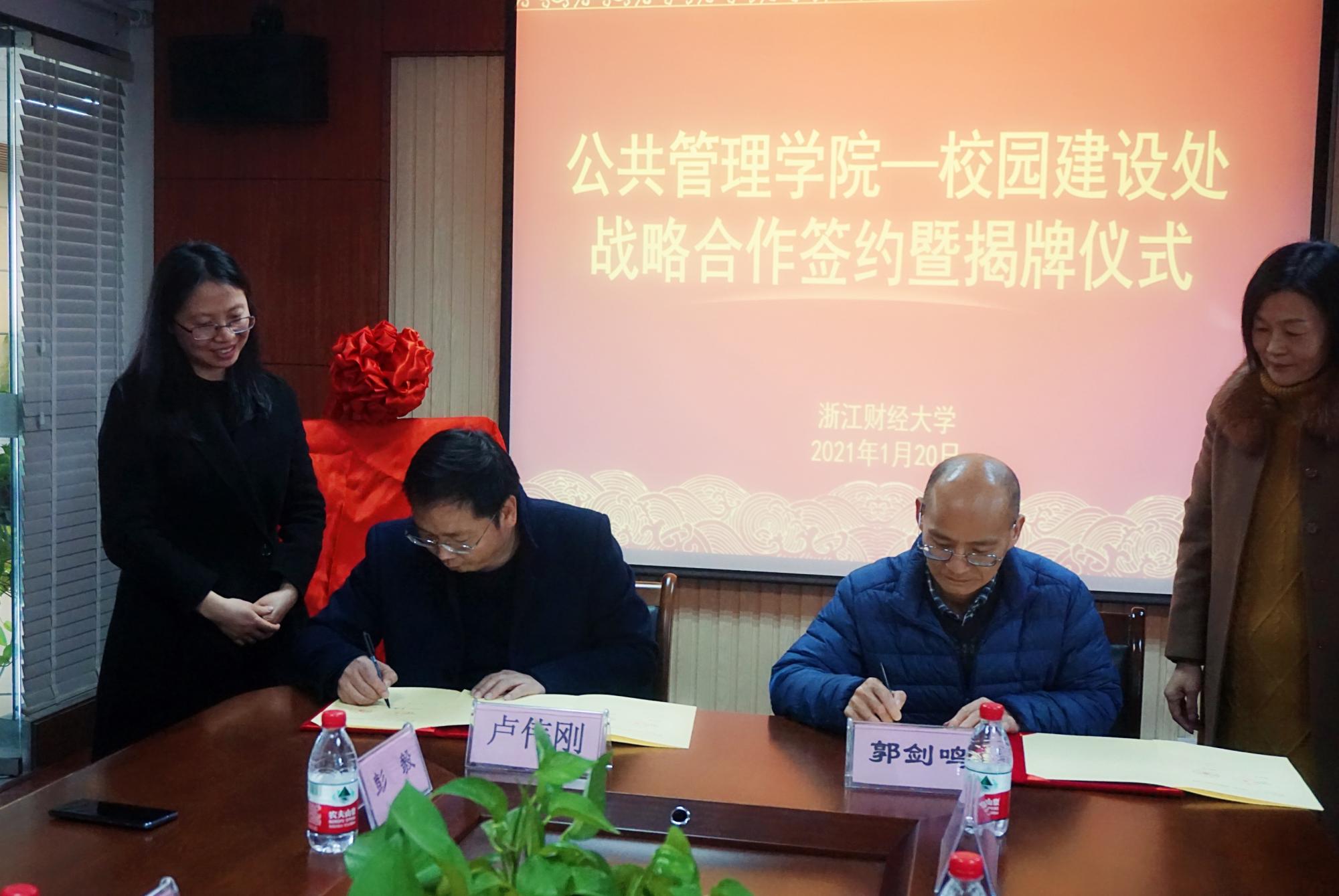 2021年1月20日下午,学院举行校园建设处战略合作签约仪式。院长郭剑鸣、校园建设处处长卢伟刚参加仪式并为“项目全过程管理”实践教育基地揭牌。会议由工程管理系系主任彭毅主持。