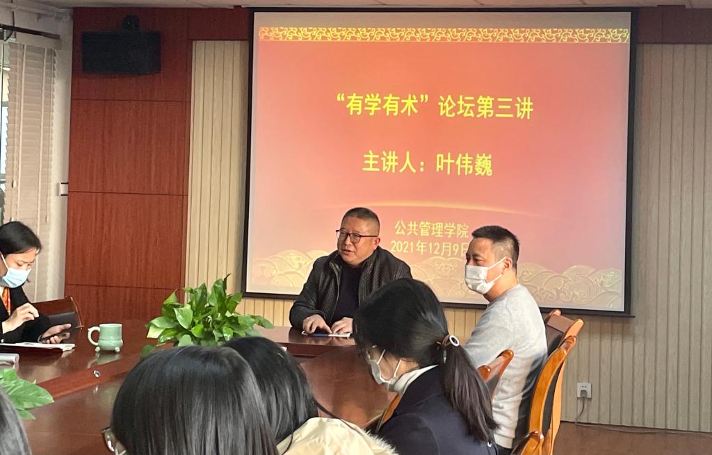 12月9日,威尼斯举办了“有学有术”第三期论坛,叶伟巍教授为本次论坛的主讲人,各专业教师参与论坛。本次论坛的主题是“申报国家社科自科项目经验分享”,旨在丰富教师学术经验,提高学院科研创新水平。