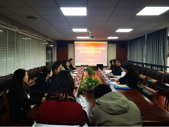 近日,校党委副书记程爽莅临学院走访调研,组织部、宣传部、人才办等负责人陪同调研。学院党政班子成员、党支部书记代表、教师代表参加调研座谈。