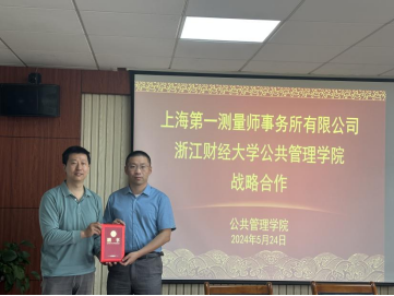 5月24日下午,学院与上海第一测量师事务所有限公司举行战略合作签约仪式暨工程造价咨询卓越人才培养座谈会。上海第一测量师事务所有限公司总工程师王毅,杭州分公司常务副总经理席晏洁,杭州分公司行政综合部主管陈咪芳,学院党委副书记田聪,工程管理系主任王鸿迪,工程系师生代表参加本次活动。学院MEM教育中心主任黄莉主持会议。
