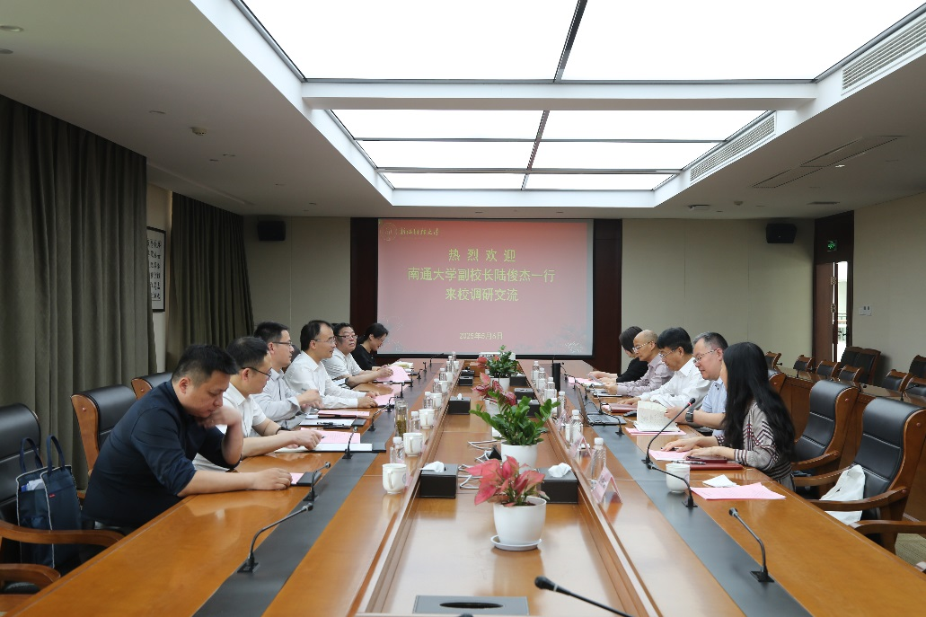 陆俊杰对学校的热情接待表示感谢,并介绍了南通大学的历史发展、特色学科和科学研究等情况。他表示,希望以此次调研为契机,加强互学互鉴、增进沟通交流,共同促进双方事业高质量发展。